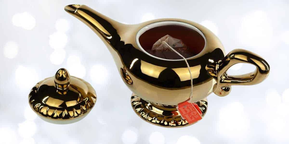Make a wish! Check out this officially licensed original Disney’s Magic Genie Lamp Teapot from the blockbuster animated musical fantasy film Aladdin! The polished golden teapot is shaped like Genie’s magical lamp. Sorry, three wishes are not included. This must-have is currently available on Amazon for $39.99.