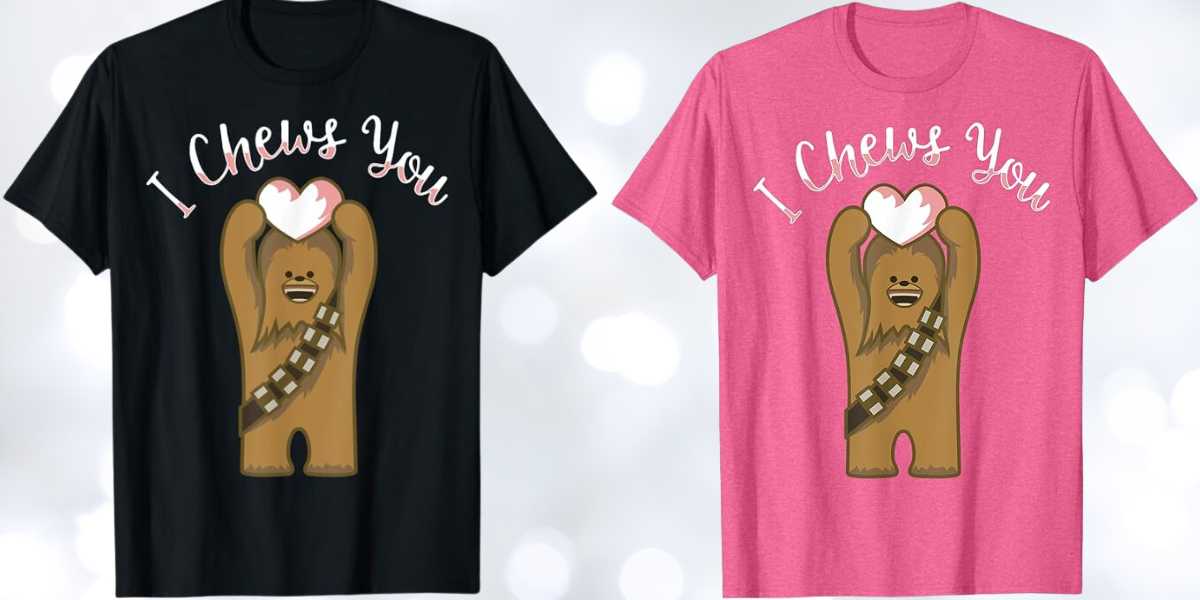 One of Star Wars most popular characters, Chewbacca, chooses YOU! This sweet “I Chews You” Valentine’s Day t-shirt is currently available on Amazon for $19.54 in a variety of sizes and colors.