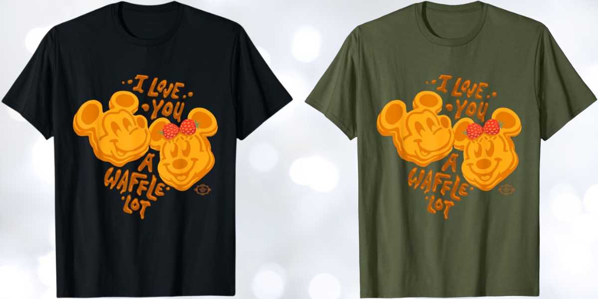 Everyone LOVES Mickey Waffles! This Amazon exclusive is available for just $19.54! Mickey Mouse and Minnie Mouse make a cute pair of waffles on this official Disney tee, featuring the adorably sweet but sticky syrup message “I Love You a Waffle Lot.” Get multiples and match up to coordinate with a loved one for even more magical fun! Check out the variety of sizes and colors.