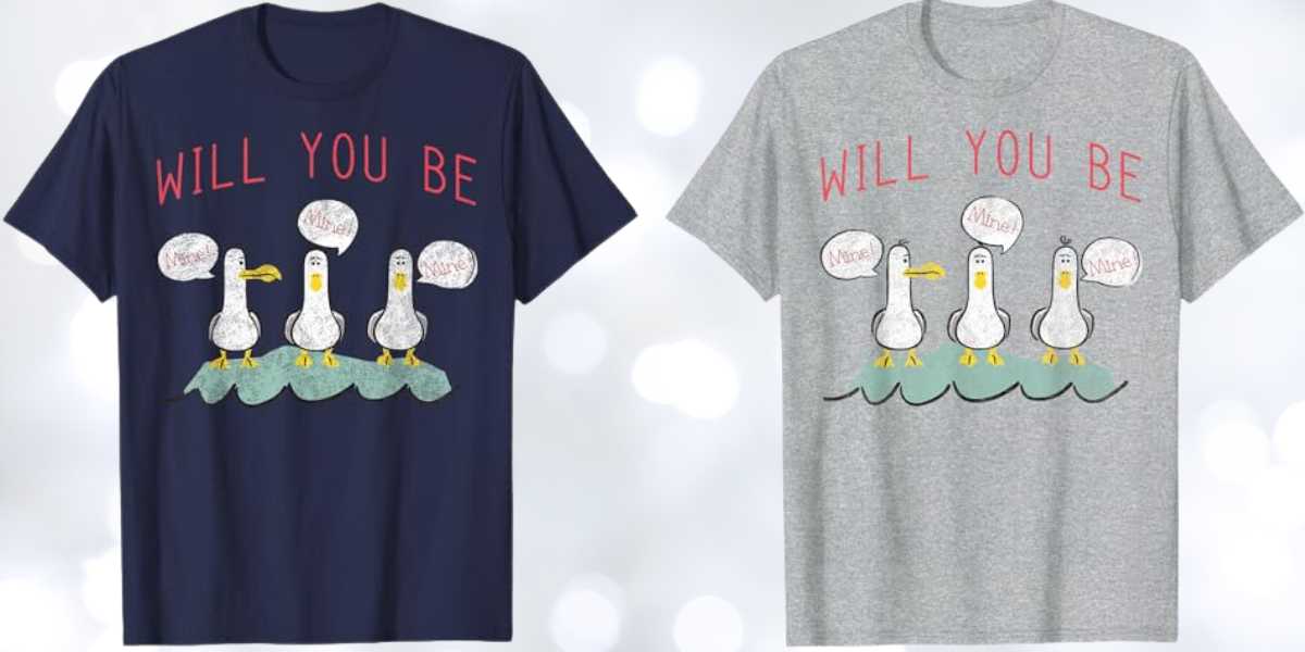 If you’re a fan of Disney Pixar’s Finding Nemo, you’ll know all about this one! So, this Valentine’s Day, will you be MINE… MINE… MINE! This sweet t-shirt is currently available on Amazon for $19.98 in a variety of sizes and colors.