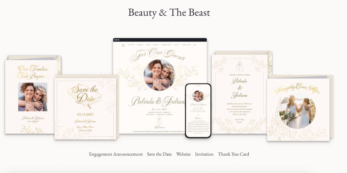 The collaboration between Disney and Lovebird combines iconic storytelling with modern wedding technology. The collection includes everything couples need to manage guest communications digitally.