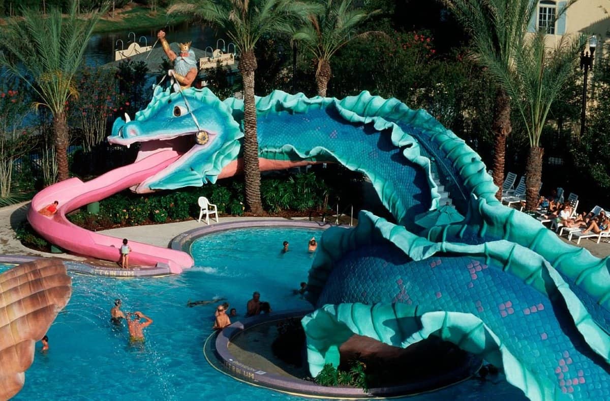 Each moderate resort has a fabulous pool, hot tub, and waterslide for Guests to enjoy. The Cabins at Disney’s Fort Wilderness Resort and Campground have two pools for Guests to enjoy, one with a 67-foot waterslide. Coronado Springs has three leisure pools perfect for Guests looking to enjoy a quieter swim experience sunbathing or wading in the pool. Guests looking for a water slide-stimulated adrenaline rush will want to check out The Lost City of Cibola Pool, which features a Mayan temple waterslide and hot tub.
