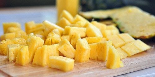 - Place one spring roll wrapper on a cutting board. Place one piece of cream cheese in the center of the spring roll and spread evenly on wrapper, leaving a 3/4-inch border around the edges. Add 3 tablespoons of diced pineapple and sprinkle with 1/2 teaspoon of sugar.