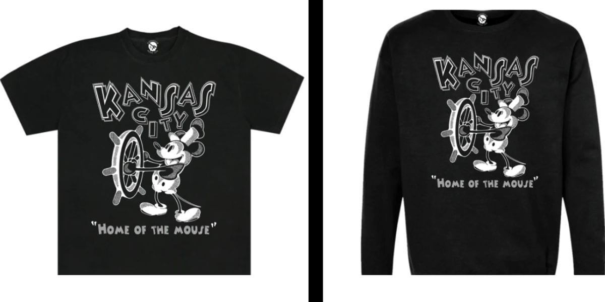 The company, called Commandeer Brand, specializes in “alternative apparel” with a Kansas City twist, and after January 1, when Disney’s copyright on Steamboat Willie expired, Brynds knew he needed to give Mickey a proper send-off–or perhaps a “welcome back home.”