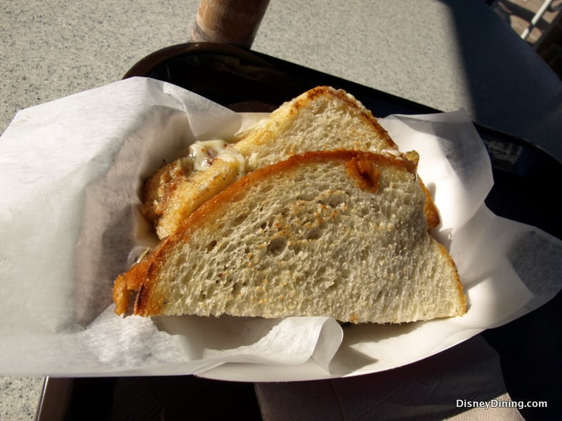 Though a juicy Lobster and Shrimp Roll was tempting and the Vegetarian Quinoa Wrap had us intrigued, it was the Grilled Cheese and Smoked Bacon Sandwich that caught our eye. The cast member behind the counter vouched for its splendor, and a few moments later, when we were staring down the crust of this beauty, it was clear we had made the right decision. Now, this isn’t your everyday grilled cheese. This baby starts with Vermont cheddar and blue cheese. Tied in neatly like a bow between bread, the apple butter brought it all together, adding a bit of sweetness to the otherwise cheesy goodness. And well, why not add some bacon? Along with the Skinny Coconut Mojito and a side of apple slaw, there could be no better poolside delight.