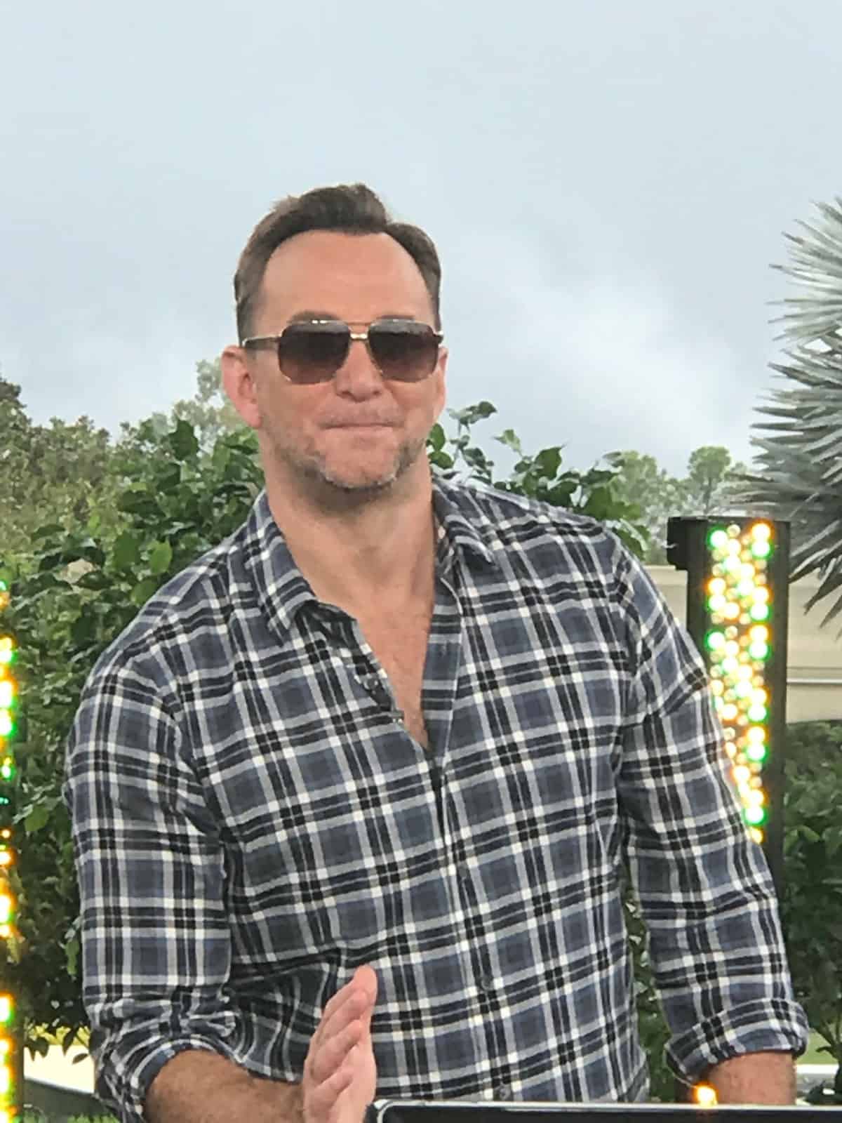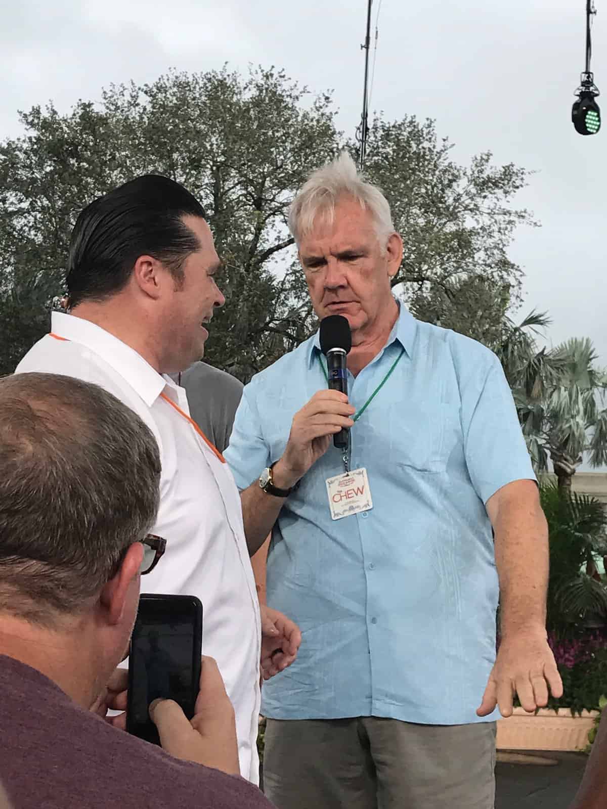 Announcer Gordon Elliot, who is also one of the show’s producers, introduced the opening segment. The cast of Mario Batali, Carla Hall, Clinton Kelly, and Michael Symon all came out, wearing banshees on their shoulders. There were several parts to the show, including a video about two super fans who were sent to Walt Disney World by The Chew, a game of Food Pyramid, and plenty of talk about Walt Disney World. The celebrity guest was actor, writer, and future director Chris Colfer. He is perhaps best known for his role of Kurt Hummel on Glee. He is also the author of the children’s series The Land of Stories. He will be directing the film versions of his series, which are currently in pre-production. Interestingly, this was Colfer’s first time at Walt Disney World, and he was enjoying every moment.