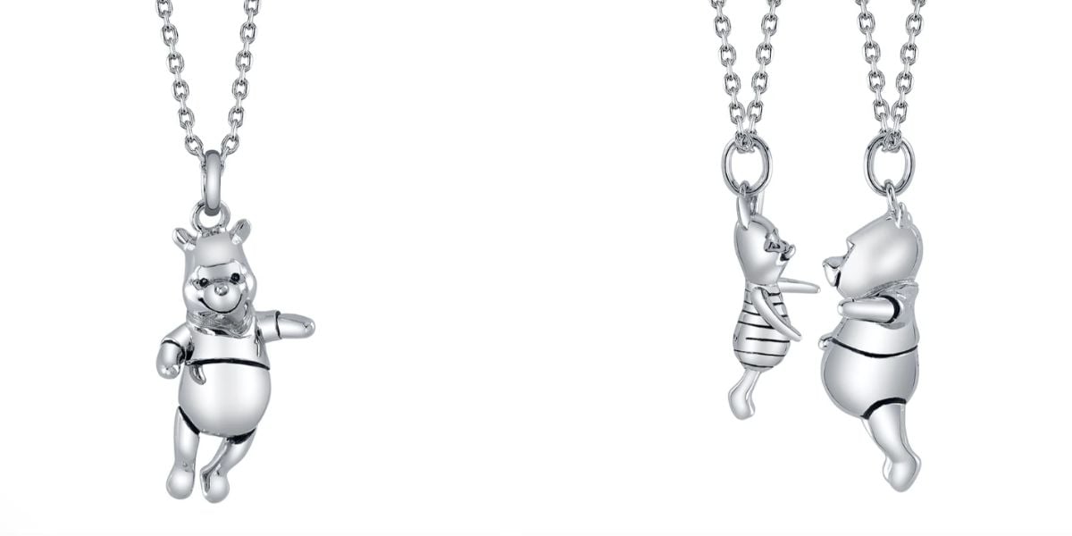 The Pooh Bear necklace from Rocklove’s “Huggables” line — nickel-free sterling silver on an adjustable 18-to-20-inch chain — was still listed at $125. The jewelry is designed to interact with other pieces from the Disney line, including Eeyore, Tigger, and Piglet necklaces.