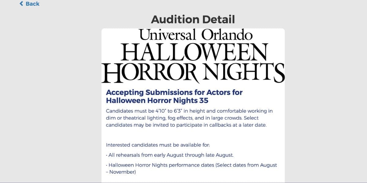 Posting multiple audition rounds in April for an event opening in late August is not excessive. It is necessary. Halloween Horror Nights requires multiple fully built haunted houses, elaborate scare zones, live entertainment, and thousands of hours of performer rehearsal before a single guest walks through on opening night. Rehearsals beginning in August mean casting needs to be largely finalized before summer starts. The April 22 deadline for this new posting reflects how tight that timeline actually is when you factor in callbacks, contracts, and the preparation work that happens between casting and opening night.