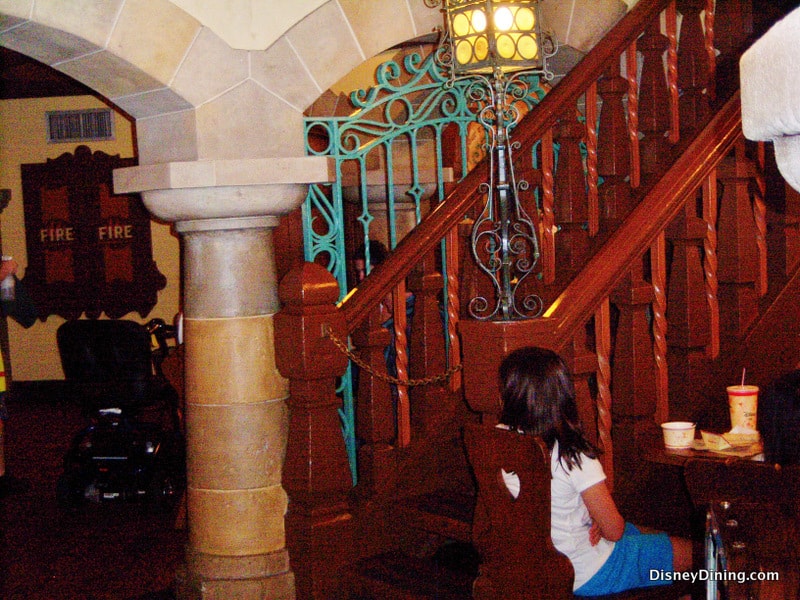 Why does this matter? Walking upstairs may deliver a less crowded dining experience for your family. Plus, you score bonus points for getting to see a space you might ordinarily bypass. Plus, you’ll get a birds-eye view from your elevated dining space.