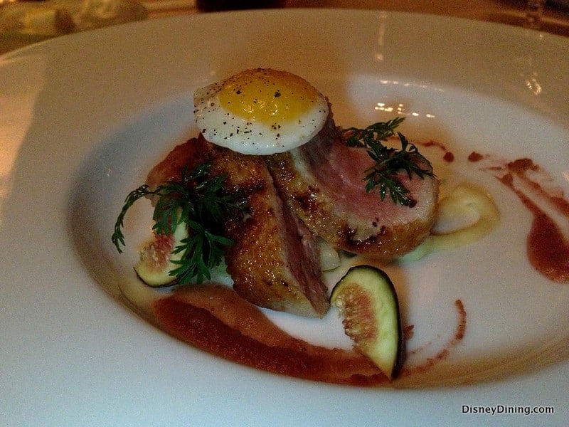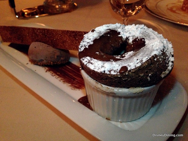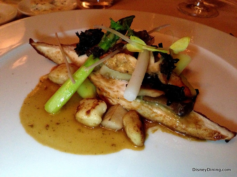 There is a very extensive wine list with over 700 selections featuring some very rare vintages. Because of the enchanted feel of the evening, I chose a glass of the Fairy Tale champagne which I was told is made and bottled especially for the nearby Disney wedding pavilion. The champagne was bubbly and dry and set the celebratory stage for a very special event.